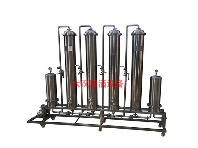 设计原理:此设备为四级过滤,每级装的过滤介质不同,所以功能也不同,才可以充分解决冬天白酒的浑浊、杂醇油、絮状物、苦味、杂味、曲香味、低温低度酒浑浊等,过滤完即可达到装瓶要求,此设备特点:过滤净化后的白酒不改变原酒风味,保持粮食酒风味的同时即可解决以上问题;欢迎来电咨询:15056056699 微信同号